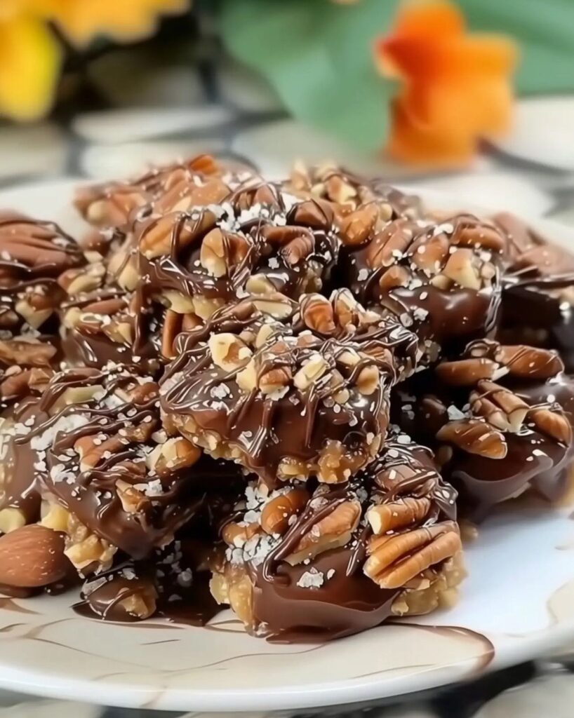 Garnish: Immediately after applying the chocolate, sprinkle each candy with a few grains of flaky sea salt and optionally press a few extra pecan pieces onto the wet chocolate for decoration (as seen in the image).
