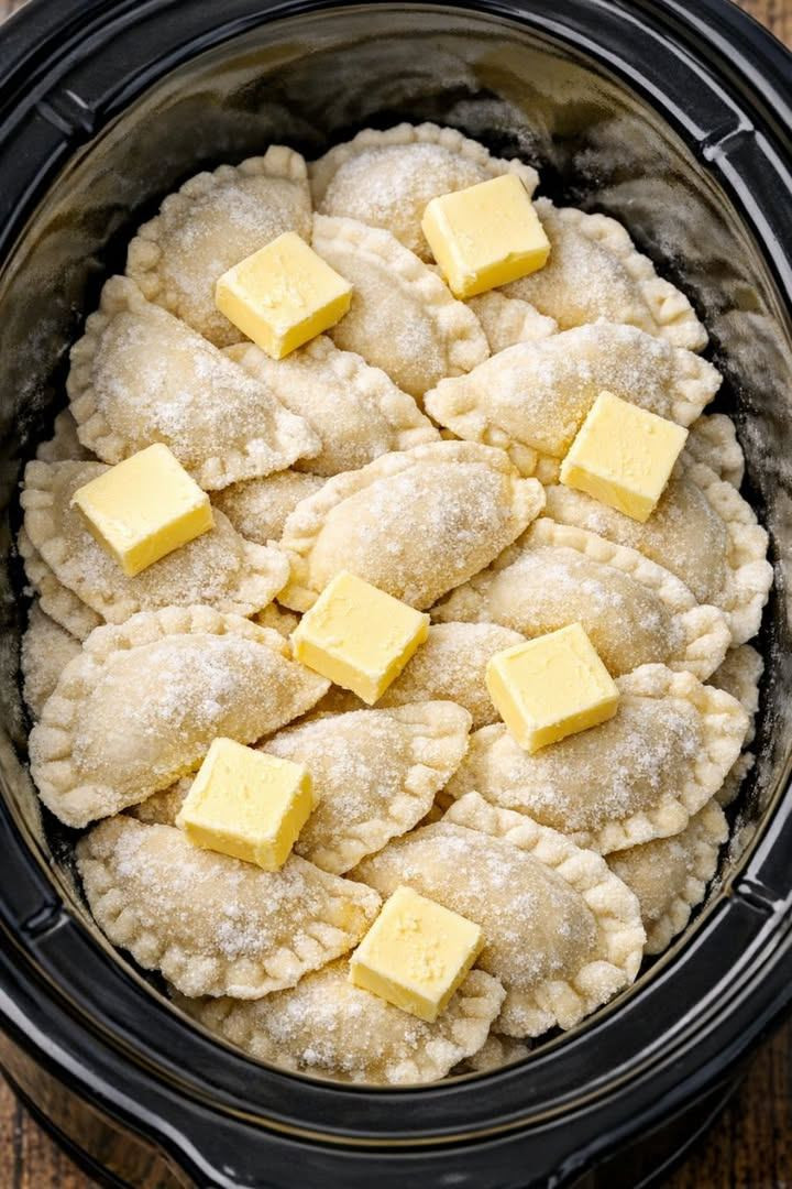 Frozen pierogi are designed to be sturdy, which makes them ideal for slow cooking. Instead of turning mushy, they absorb flavor gradually while keeping their shape. The slow cooker also encourages: