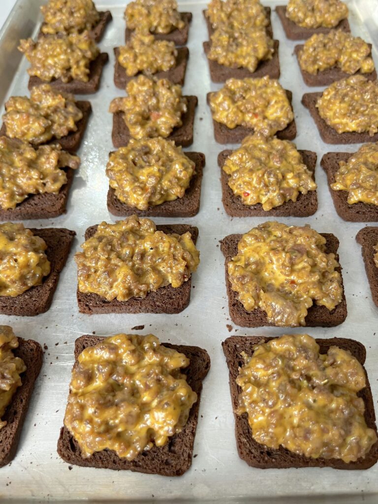 What makes Hanky Panky Bites so special is their simplicity. A flavorful mixture of sausage, melted cheese, and seasoning is spooned onto small slices of bread, then baked until bubbly and golden. The result is a crispy, creamy, savory bite that disappears almost as quickly as it’s served.