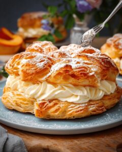 There are desserts that taste like comfort, and then there are desserts that taste like sunshine. The Peach Cream Puff Pastry Cake is both—light, flaky, creamy, and bursting with juicy peach sweetness. It’s the kind of treat that instantly transports you to warm evenings, blooming orchards, and the simple pleasure of a homemade dessert shared with people you love.