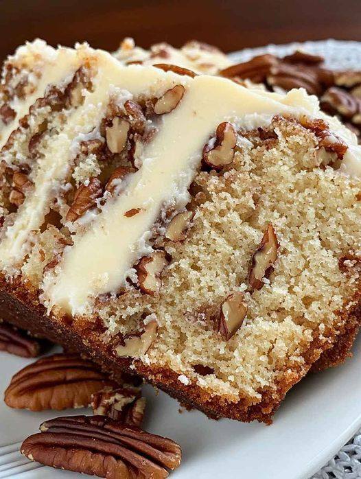 Traditional pound cake relies on butter, sugar, eggs, and flour for its signature texture. In this version, pecans toasted gently in butter are folded into the batter, adding crunch, aroma, and a rich Southern character. Every slice offers a contrast between soft crumb and buttery nut bite.