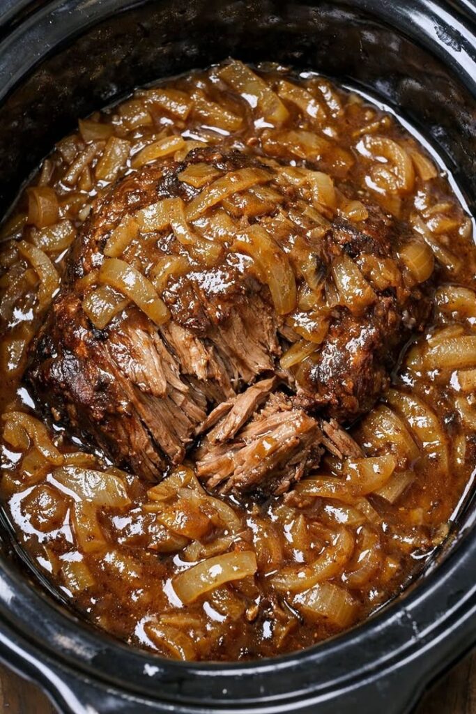 Some recipes feel like secrets passed down through generations — not because they’re complicated, but because they’re brilliantly simple. The Slow Cooker 4-Ingredient Onion Soup Pot Roast is exactly that kind of dish. It transforms a humble cut of beef into a fork-tender, flavor-packed meal with almost no effort.