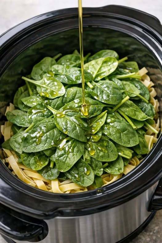 Slow Cooker Spinach Pasta Primavera: A Fresh and Creamy Vegetable Pasta 🍝🥬 – All Recipes Healthy Food