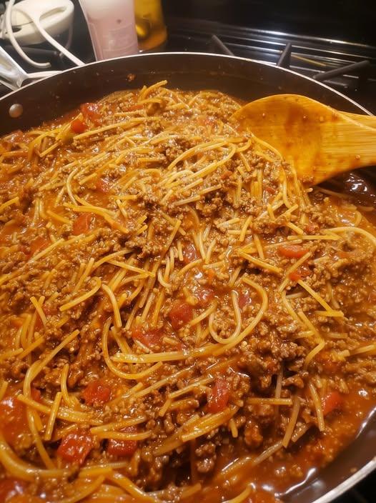 The spaghetti will soak up the broth and absorb all that spicy taco flavor.